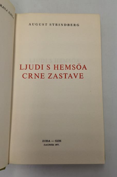 August Strindberg: Ljudi s Hemsoa, Crne zastave Stranica: 352Dimenzije: 12.5x19.5Jezik: ZagrebPismo: LatinicaStanje: Vrlo dobroUvez: TvrdiGodina: 1977