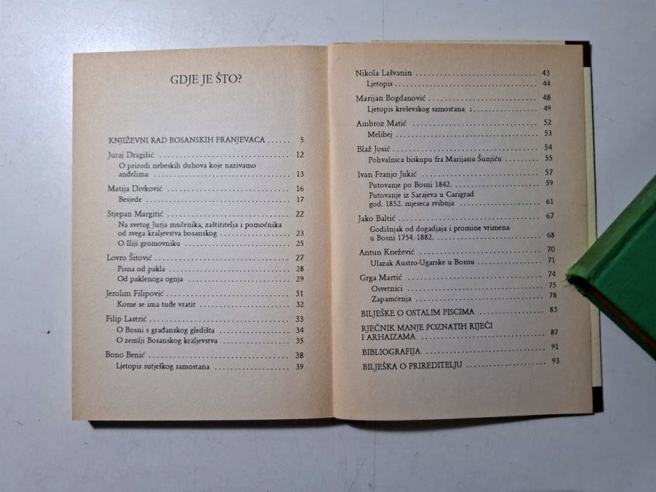 Zastupljeni autori: Juraj Dragišić, Matija Divković, Stjepan Margitić, Lovro Šitović, Jerolim Filipović, Filip Lastrić, Bono Benić, Nikola Lašvanin, Marijan Bogdanović, Blaž Josić, Ivan Franjo Jukić, Jako Baltić, Antun Knežević, Grga Martić.