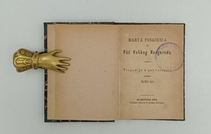 Matija Ban: Marta posadnica ili pad Velikog Novgoroda Stranica: 208Dimenzije: 11x14Jezik: DubrovnikPismo: LatinicaStanje: Vrlo dobroUvez: TvrdiGodina: 1872