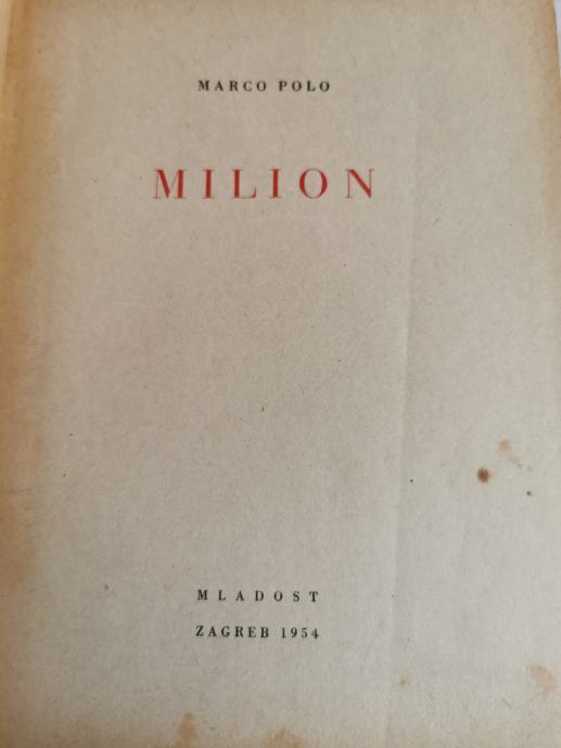 Marco Polo - Milion - izdavač Mladost, Zagreb 1954. godine, 15 x 20 cm, tvrdi uvez
