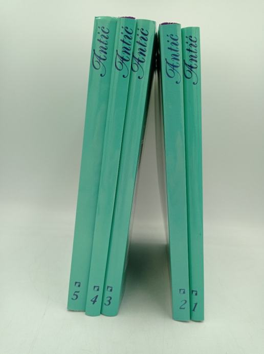 Miroslav Antić: Pra-govor I-V 1.) Horoskop 2.) Tako zamišljam nebo 3.) Plavi čuperak 4.) Garavi sokak 5.) Hodajući na rukama Stranica: 129 +165 +159+ 132 +188Dimenzije: 15x23.5Jezik: ZagrebPismo: LatinicaStanje: Nova knjigaUvez: MekiGodina: 1989