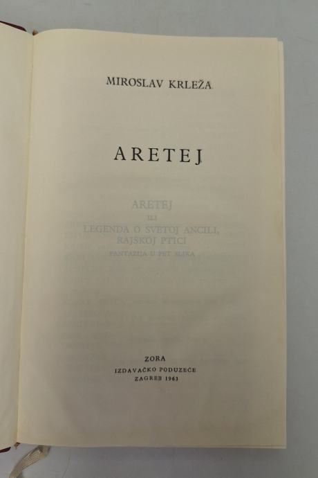 Miroslav Krleža: Sabrana djela, svezak 22-24: Aretej, Eseji (knjige peta i šesta)Sabrana djela Miroslava Krleže ; Svezak 22-24 Ova je knjiga tiskana u 200 primjeraka numeriranih od 1 do 200 na biblijskom 35-gramskom papiru. Primjerak br. 44 Stranica: 340Dimenzije: 14x20Jezik: ZagrebPismo: LatinicaStanje: OdličnoUvez: TvrdiGodina: 1963
