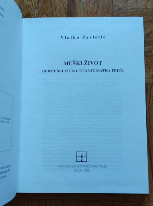 Muški život, Hermeneutičko čitanje Matka Peića, Vlatko Pavletić, 1996.
