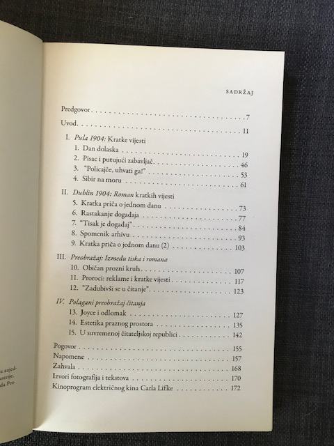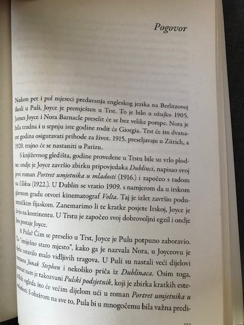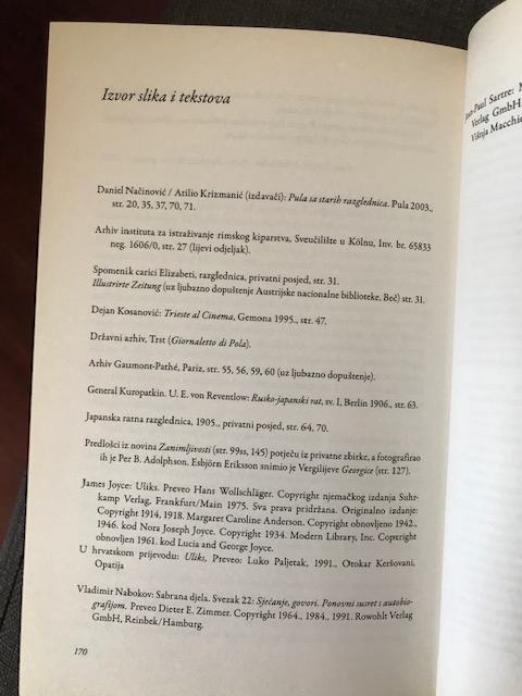 Zabilješke: Listopad 1904. Dvadesetdvogodišnji James Joyce dolazi u „zabačenu“ Pulu na istarskom poluotoku gdje preuzima mjesto profesora engleskog jezika. Njegov se odlazak naveliko najavljuje u mjesnim novinama. Joyce postaje izravni svjedok niza spektakularnih događaja: patetičnog uprizorenja slavlja u čast ubijene carice „Sisi“, predstava jednog putujućeg kina i bujice fotografija i vijesti iz rusko-japanskog rata…(iz tiska)