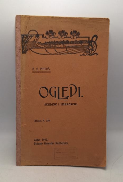 A. G. Matoš: Ogledi studije i impresijePrvo izdanje Stranica: 170Dimenzije: 14.5x23.5Jezik: ZadarPismo: LatinicaStanje: Vrlo dobroUvez: MekiGodina: 1905