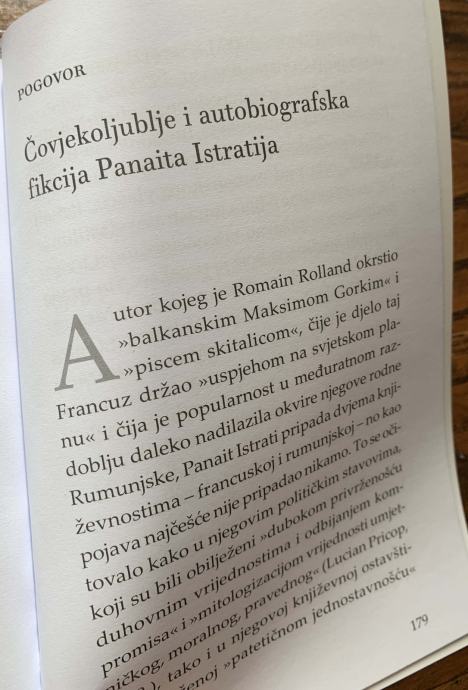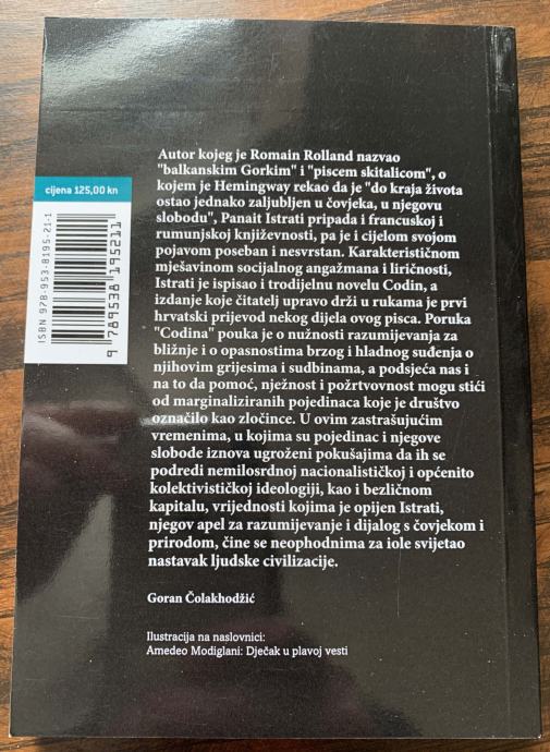 Autor kojeg je Romain Rolland nazvao balkanskim Gorkim i piscem skitalicom, o kojem je Hemingway rekao da je do kraja života ostao jednako zaljubljen u čovjeka, u njegovu slobodu, Panait Istrati pripada i francuskoj i rumunjskoj književnosti, pa je i cijelom svojom pojavom poseban i nesvrstan. Karakterističnom mješavinom socijalnog angažmana i liričnosti, Istrati je ispisao i trodijelnu novelu Codin. Poruka Codina pouka je o nužnosti razumijevanja za bližnje i o opasnostima brzog i hladnog suđenja o njihovim grijesima i sudbinama, a podsjeća nas i na to da pomoć, nježnost i požrtvovnost mogu stići od marginaliziranih pojedinaca koje je društvo označilo kao zločince. U ovim zastrašujućim vremenima, u kojima su pojedinac i njegove slobode iznova ugroženi pokušajima da ih se podredi nemilosrdnoj nacionalističkoj i općenito kolektivističkoj ideologiji, kao i bezličnom kapitalu, vrijednosti kojima je opijen Istrati, njegov apel za razumijevanje i dijalog s čovjekom i prirodom, čine se neophodnima za iole svijetao nastavak ljudske civilizacije.