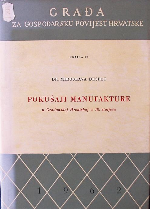 POKUŠAJI MANUFAKTURE u građanskoj hrvatskoj u 18. stoljeću Dr Miroslava Despot
