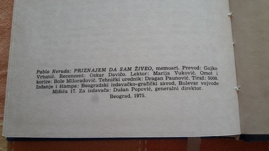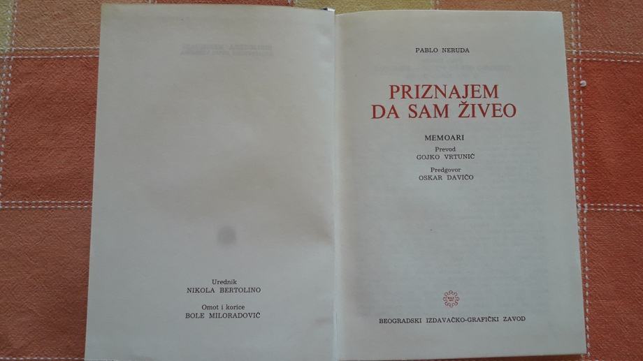 Priznajem da sam živeo - Pablo Neruda, BIGZ 1975.