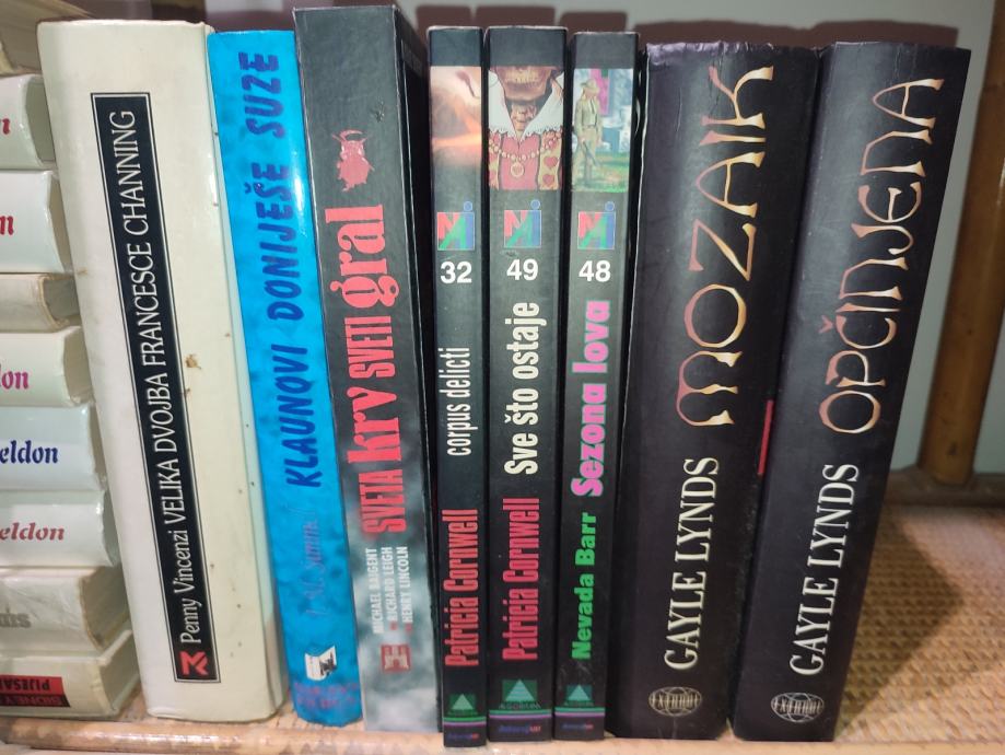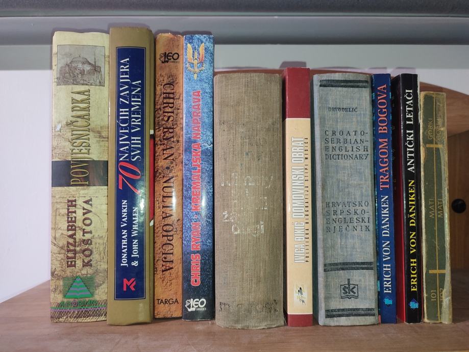 Prodajem knjige većina jako dobro očuvana cijena po dogovoru... Neke od njega su prodane: Poštovani, zainteresirani smo za slijedeće knjige: Rječnik simbola/ Jadranka komplet 1-7/ Kum/ Dvoran Pennmarric 1-3/ Moja Afrika/ Dolina konja/ Pleme spiljskog medvjeda/ Vodoriga/ Ključ za Rebeccu/ Velo misto 1-2/ Hotel Grand/ Calvino/ Lampedusa/ Pirandelo/ Buzzati/ Manzoni/ Rebecca/ Omerta/ Dostojevski - sve/ Let preko kukavičjeg gnijezda/ Može i bez kavijara 1-2/ Tragom bogova/ Antički letači/ Zweig 1-6/ 7000 dana u Sibiru/ Čehov 1-5.