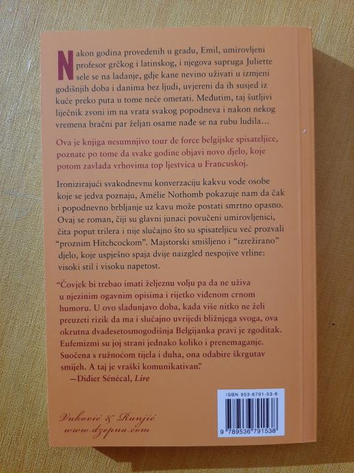 Roman čiji su glavni junaci povučeni umirovljenici, bivši profesor grčkog i latinskog i njegova supruga, koji se sele iz grada u kuću na ladanju, nadajući se mirnom životu. Međutim, ubrzo ih počinju uznemiravati susjedi: naoko šutljivi liječnik iz kuće preko puta zvoni im na vrata svakog popodneva, te su oni prisiljeni voditi svakodnevnu konverzaciju uz kavu tipičnu za osobe koje se jedva poznaju. Stari bračni par, željan osame, doživljava tu situaciju kao sve veće opterećenje, te pomalo dolazi na rub živčanoga sloma…