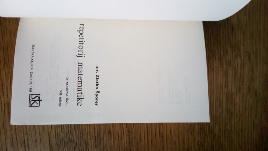 "Repetitorij matematike za osnovnu školu", Zlatko Šporer