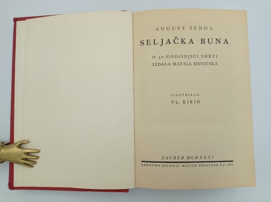 August Šenaoa:Seljačka bunaO 50-godišnjici smrti izdala Matica HrvatskaIlustracije: Vladimir Kirin Stranica: 345Dimenzije: 16x22Jezik: ZagrebPismo: LatinicaStanje: Vrlo dobroUvez: TvrdiGodina: 1931