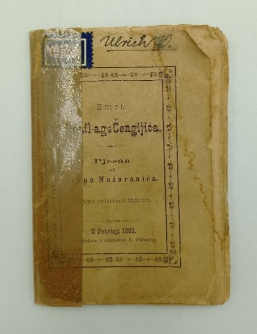 Ivan Mažuranić: Smrt Smail-age Čengijića Stranica: 64Dimenzije: 9x13Jezik: PetrinjaPismo: LatinicaStanje: DobroUvez: MekiGodina: 1883