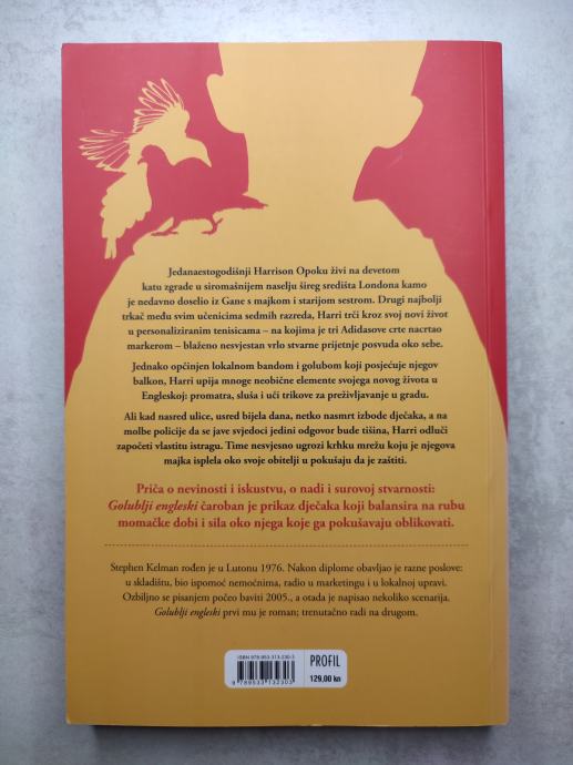 Harrison Opoku ima 11 godina i nedavno je s majkom i sestrom iz Gane stigao u Englesku. Još uvijek djetinje nevin, Harri se polako privikava na život u drugoj kulturi. Nakon što jednog dječaka ubiju na ulici, a napori policije da nađe ubojicu se pokažu jalovi, Harri i njegov prijatelj Dean odlučuju provesti vlastitu istragu. Dok tražeći tragove motre šarolike stanovnike svoga naselja, dječaci dovode u opasnost sebe i svoje obitelji. Golublji engleski je prvi roman Stephena Kelmana.