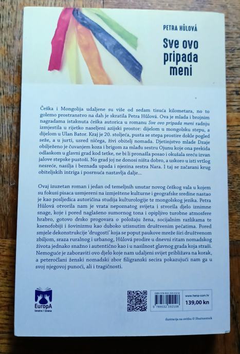 Češka i Mongolija udaljene su više od sedam tisuća kilometara, no to golemo prostranstvo na dah je skratila Petra Hůlová. Ova je mlada i brojnim nagradama istaknuta češka autorica u romanu Sve ovo pripada meni radnju izmjestila u rijetko naseljeni azijski prostor: dijelom u mongolsku stepu, a dijelom u Ulan Bator. Kraj je 20. stoljeća, pusta se stepa prostire dokle pogled seže, a u jurti, usred ničega, živi obitelj nomada. Djetinjstvo mlade Dzaje obilježeno je čuvanjem koza i brigom za mlađu sestru Ojunu koje ona prekida odlaskom u glavni grad kod tetke, ne bi li pronašla posao i okušala sreću izvan jalove stepske pustoši. No grad joj ne donosi ništa dobro, a uskoro u isti vrtlog nesreće, nasilja i beznađa upada i njezina sestra Nara. I taj se začarani krug obiteljskih intriga i posrnuća nastavlja dalje...