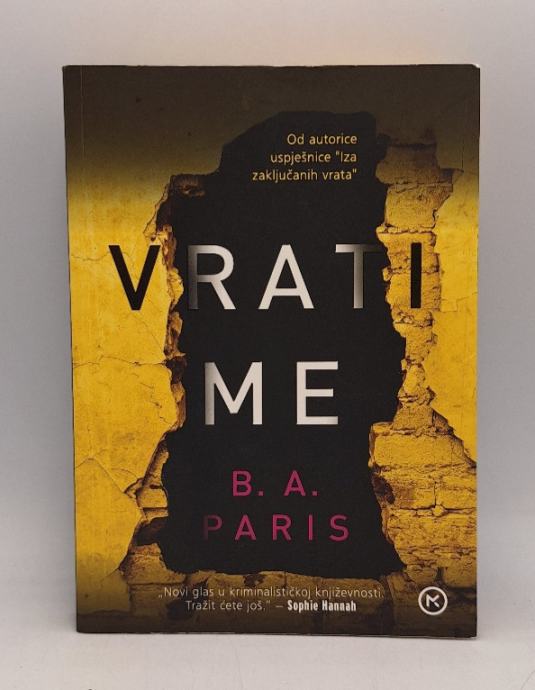 B.A. Paris: Vrati meOd autorice uspješnica Slom i Iza zaključanih vrata, Vrati me – džepno izdanje je novi napeti triler koji će vas držati u neizvjesnosti do samoga kraja.Fin i Layla zaljubljeni su par na odmoru u Francuskoj. Nakon kratkog predaha u vožnji autocestom Fin se vraća u automobil, no Leyli se u tom trenutku gubi svaki trag. To je barem ono što je ispričao policiji. Dvanaest godina kasnije Fin je zaručen s Ellen, Laylinom sestrom, a idilu narušavaju nove indicije koje upućuju na činjenicu da je Layla još živa.Izuzetno uzbudljiv kriminalistički roman Vrati me, autorice B. A. Paris, ponukat će vas da sumnjate u sve i svakoga u iščekivanju nevjerojatnog raspleta. Stranica: 270Dimenzije: 15x20Jezik: ZagrebPismo: LatinicaStanje: Vrlo dobroUvez: MekiGodina: 2019
