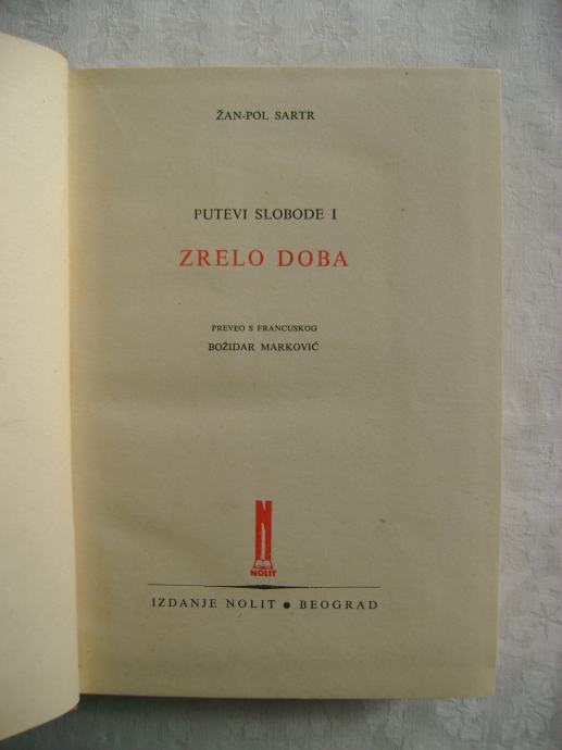 Žan-Pol Sartr (Jean-Paul Sartre) - Putevi slobode 1; Zrelo doba - izdavač Nolit, Beograd 1958. godine, 15 x 20 cm, tvrdi uvez i papirnati omot, 339 stranica.