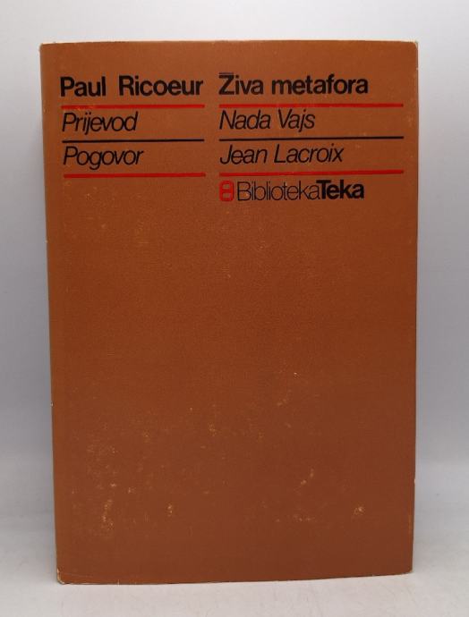 Paul Ricoeur: Živa metafora Stranica: 378Dimenzije: 16x23.5Jezik: ZagrebPismo: LatinicaStanje: Vrlo dobroUvez: Tvrdi s ovitkomGodina: 1981