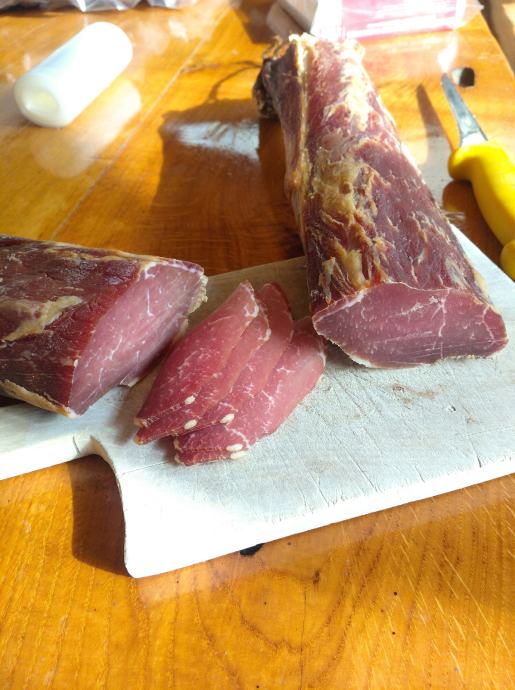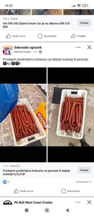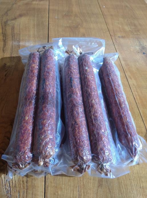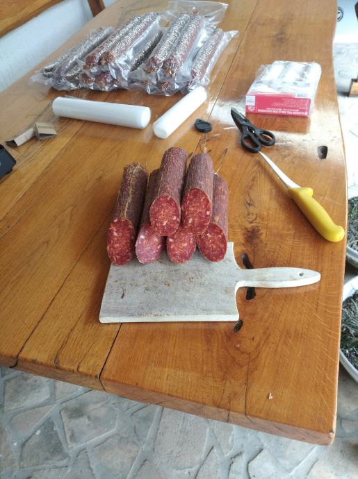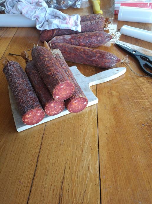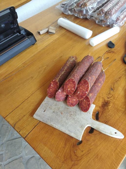 Domaća suha kobasica.. od svinja iz vlastitog uzgoja, domaća baranjska paprika. 15e/kg.., odlicne kvalitete!! Najbolje doci vidjeti i probati...