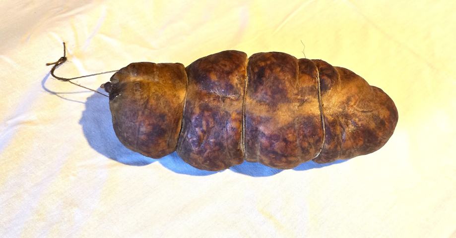 Prodaje se domaći prosušeni i dimljeni slavonski kulen/kulin. Meso je provjereno/testirano. Razlog prodaje je višak mesa, nije komercijalna prodaja, a ima više komada za prodaju.