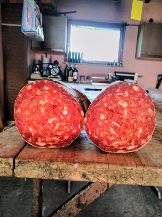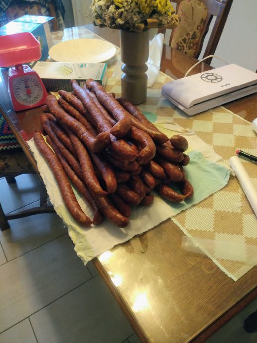 Za prodaju kulen i prodimljena kobasica. Proizvodi od crne slavonske svinje. Cijena kulena 35 eura/kg, kobasica 12 eura/kg. Ne odgovaram na SMS isključivo zvati 091 565 8569