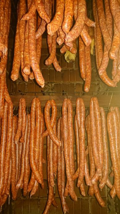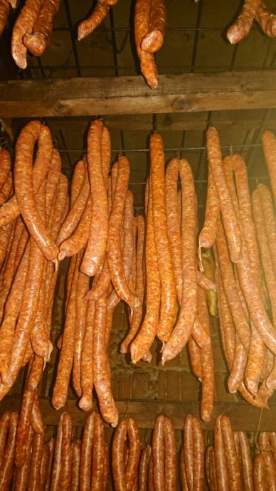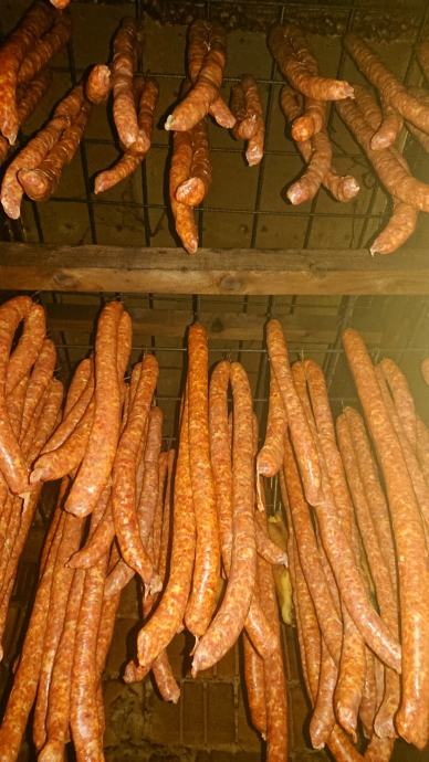 Prodajem odimljene kobasice premium kvalitete. Kobasice su napravljen od mesa domacih svinja uzgojenaih na vlastitom OPG-u i baranjske paprike te su umjereno ljute. Meso je medicinski pregledano o čemu imamo veterinarsku potvrdu.
