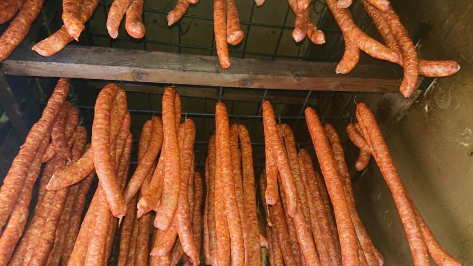 Kobasice su trenutno dovoljno suhe da se mogu narezivati.