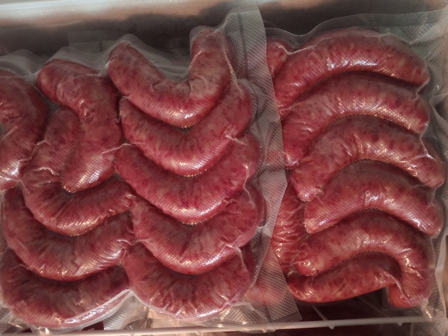 Prodajem kranjske kobasice, rađene za osobnu upotrebu a višak prodajem, svinje hranjene isključivo domačom hranom (kukuruz,ječam,pšenica,zob,stočni grašak) i uzgajane na vlastitom gospodarstvu, cijena 11,00 EUR/kg, mogučnost dostave,moguće slanje poštom pouzečem, mob. 091 3112 384