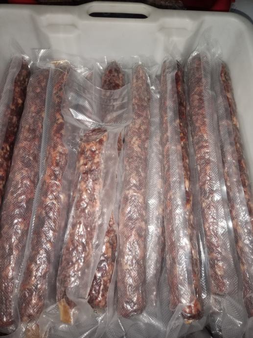Prodajem salame kulenova seka, rađeno za osobnu upotrebu a višak prodajem, svinje hranjene isključivo domačom hranom (kukuruz,ječam,pšenica,zob,stočni grašak) i uzgajane na vlastitom gospodarstvu, cijena 14,- EUR/kom, moguća dostava po dogovoru,moguče slanje poštom pouzečem, mob.091 3112 384