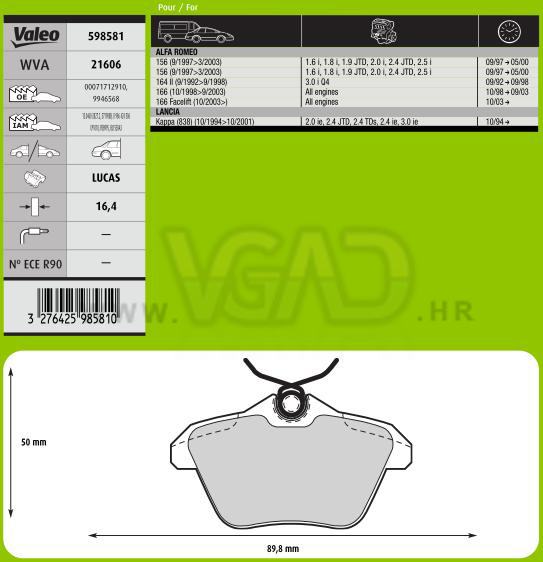 DP ALFA 156 ZAD LANCIA KAPPA 16.4 MM VALEO