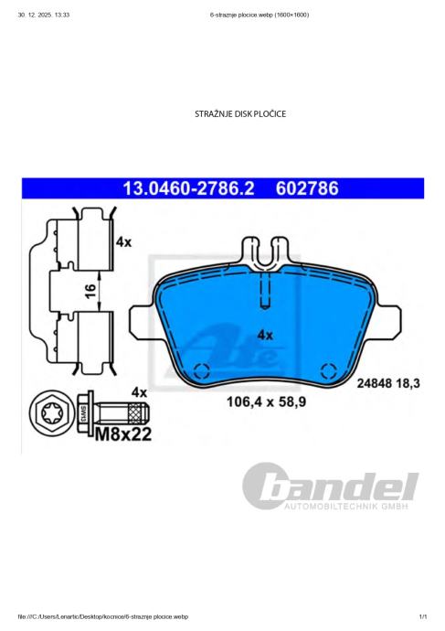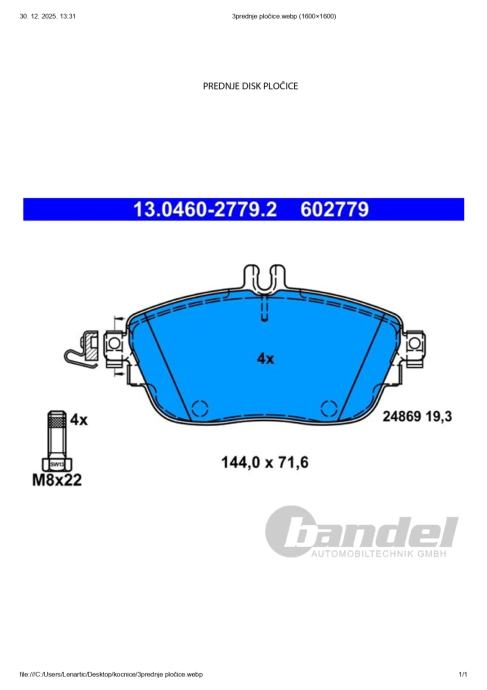 Prodajem potpuno nove ATE diskove i plocice za Mercedes A-KLASSE W176 B-KLASSE W246, CLA KLASSE C117 i X117 220 CDI