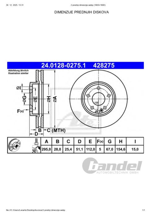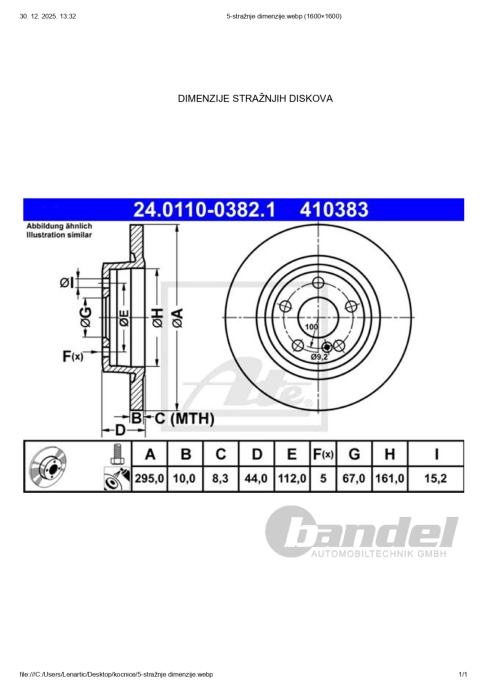 prednji i zadnji, razlog prodaje je prodano vozilo... Dimenzije prednjih diskova 295x28mm, stražnjih VA 295x10mm, ostale dimenzije vidljive na slikama u prilogu. Cijena 260 € 098/ 573-693