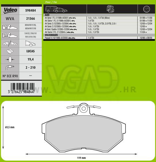 DP AD A-4 94- VW PASSAT 19.4 MM S INDIKATOROM VALEO