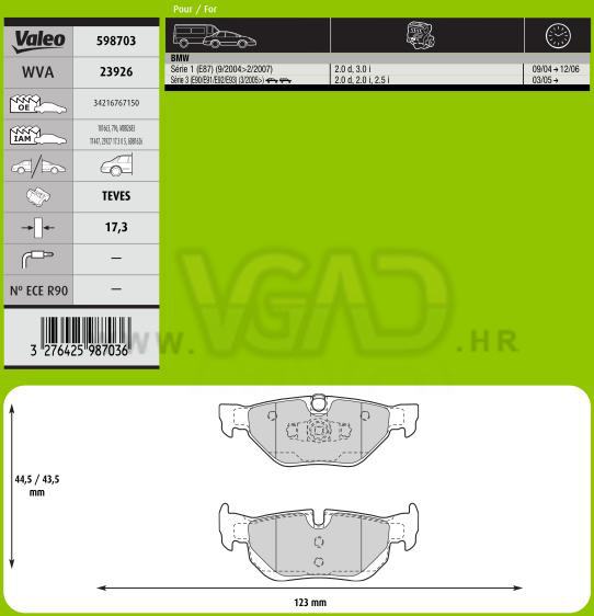 DP BMW 3 E90 ZAD E91 E92 E93 17.3 MM VALEO