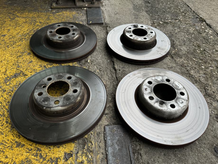 BMW M135i F20 diskovi, prednji jako dobro stanje, stražnji malo dublje potrošeni, ali generalno dobri. Ravni su, bez pukotina i savijanja.