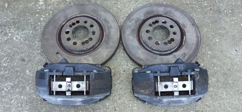 Serijski disk na 607 v6 je 330x30mm, al imaju jako široki prihvat (36mm) pa mozete bez problema stavit disk do 370x34mm i još ostane sa svake strane čeljusti slobodno 15mm kolko je debela nova pločica