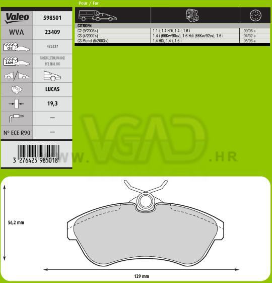 DP CITROEN C2 C3 PLURIEL XARA 20 16V 19.3 MM VALEO