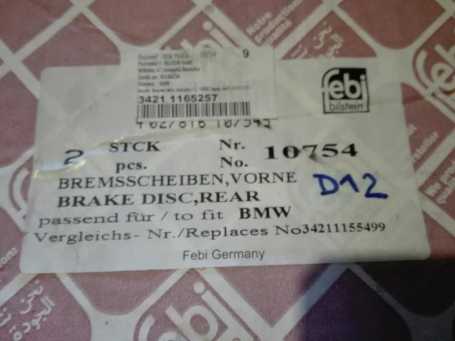 Diskovi kočioni Febi broj 10752 prednji za BMW 7 E38 (143 - 235 PS, 10.1994 - 11.2002 MY) i diskovi stražnji Febi 10754 za BMW 7 E32 1986 - 1994.