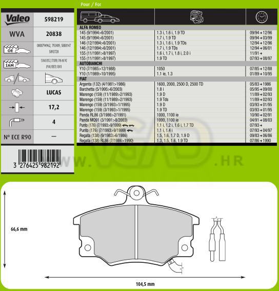 DP FIAT ALFA LANCIA 17.2 MM S INDIKATOROM VALEO