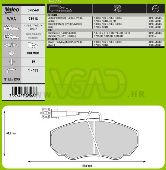 DP FIAT DUCATO CITROEN PEUGEOT BOXER 19.0 MM S IND VALEO