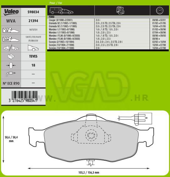 DP FORD MONDEO 93- SCORPIO 18.0 MM VALEO
