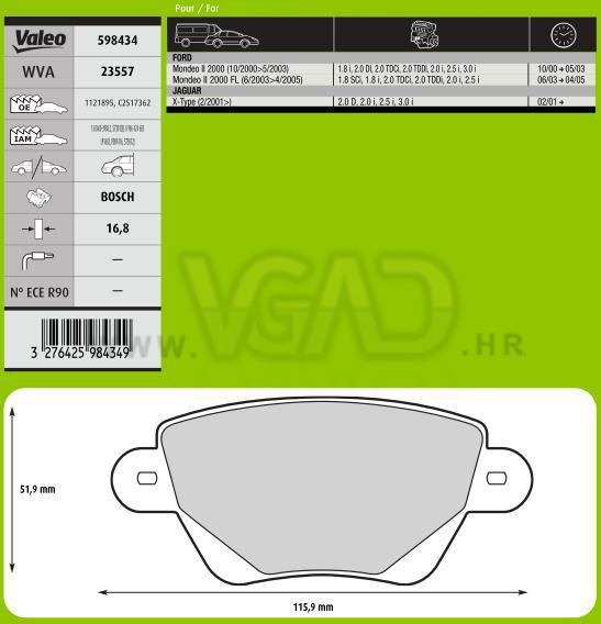 DP FORD MONDEO 00- ZAD JAGUAR X-TYPE 16.8 MM VALEO