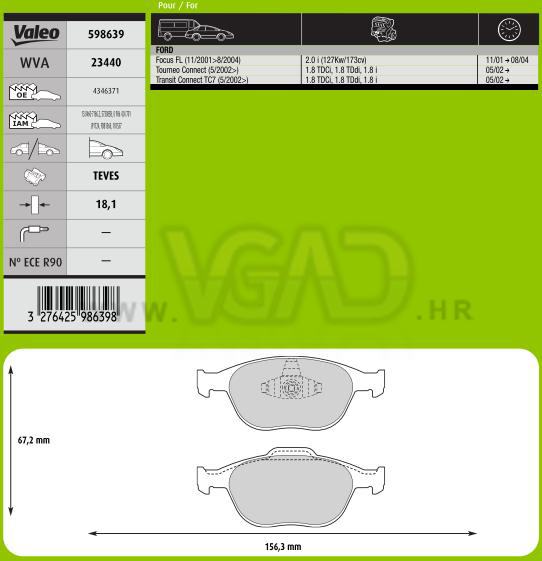 DP FORD FIESTA 05- FOCUS 02- 18.1 MM VALEO