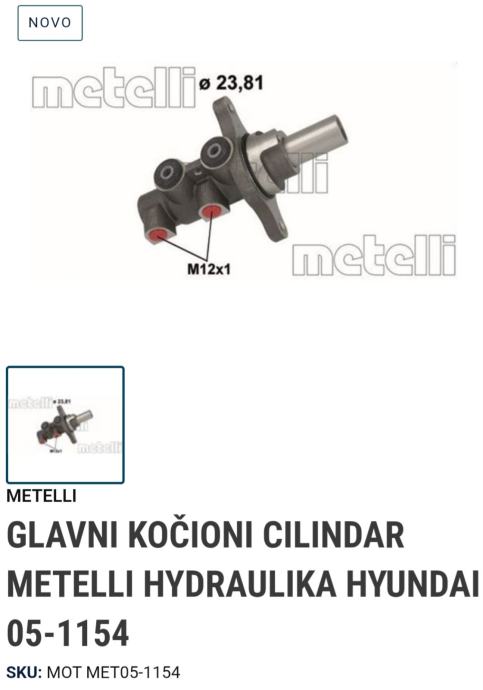 Metelli kočioni cilindar za hyundai i40,nov,ne otpakovan.Na drugoj slici piše za koje modele sve paše.U dućanu je od 90 do 100 evra. Zvati na 091/618 96 28 Vlada