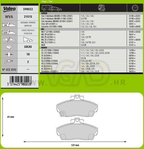 DP HONDA CIVIC ROVER 18.0 MM S INDIKATOROM VALEO
