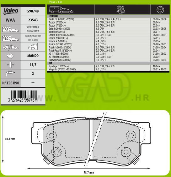DP HYUNDAI SANTA FE ZAD 15.7 MM VALEO