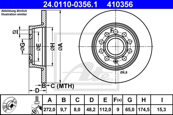 Kočioni disk Original ATE 410356 Golf 6 Škoda Audi Seat (Ø: 272,0 mm)
