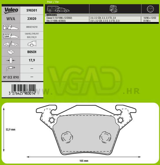 DP MERCEDES VITO 96- ZAD 17.9 MM VALEO