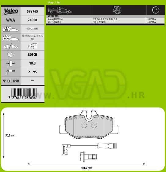 DP MERCEDES VITO 03- ZAD 18.3 MM S INDIKATOROM VALEO