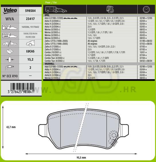 DP OPEL ASTRA ZAD COMBO MERIVA ZAFIRA 15.2 MM S IND VALEO